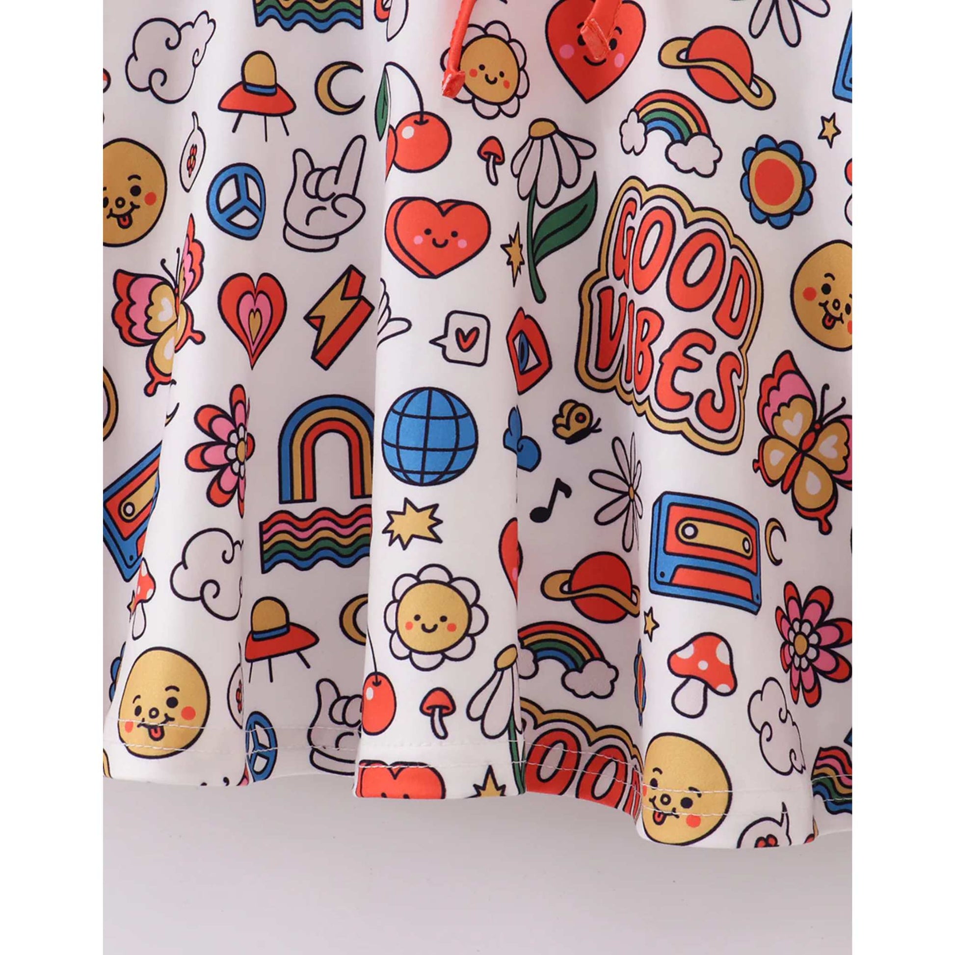 Get ready to spread some good vibes in this playful ruffle dress! With a fun emoticon print, you're sure to turn heads and make people smile.