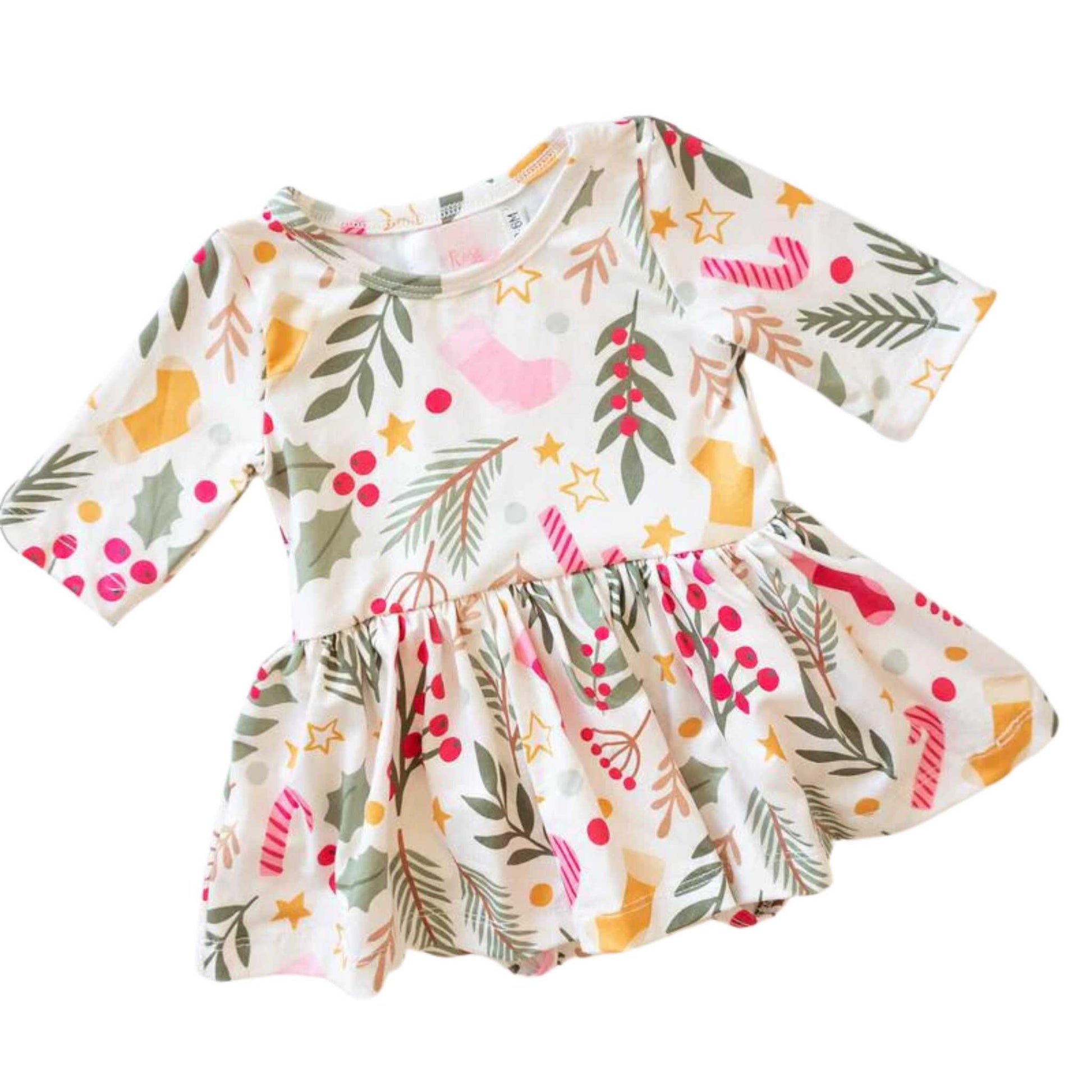 Our twirl bodysuit is the newest addition to our twirl line.  Perfect for babies!  Snap closure for diaper changes AND no need for bloomers.  Matching twirl dresses are available for big sis, cousin, or BFF.
