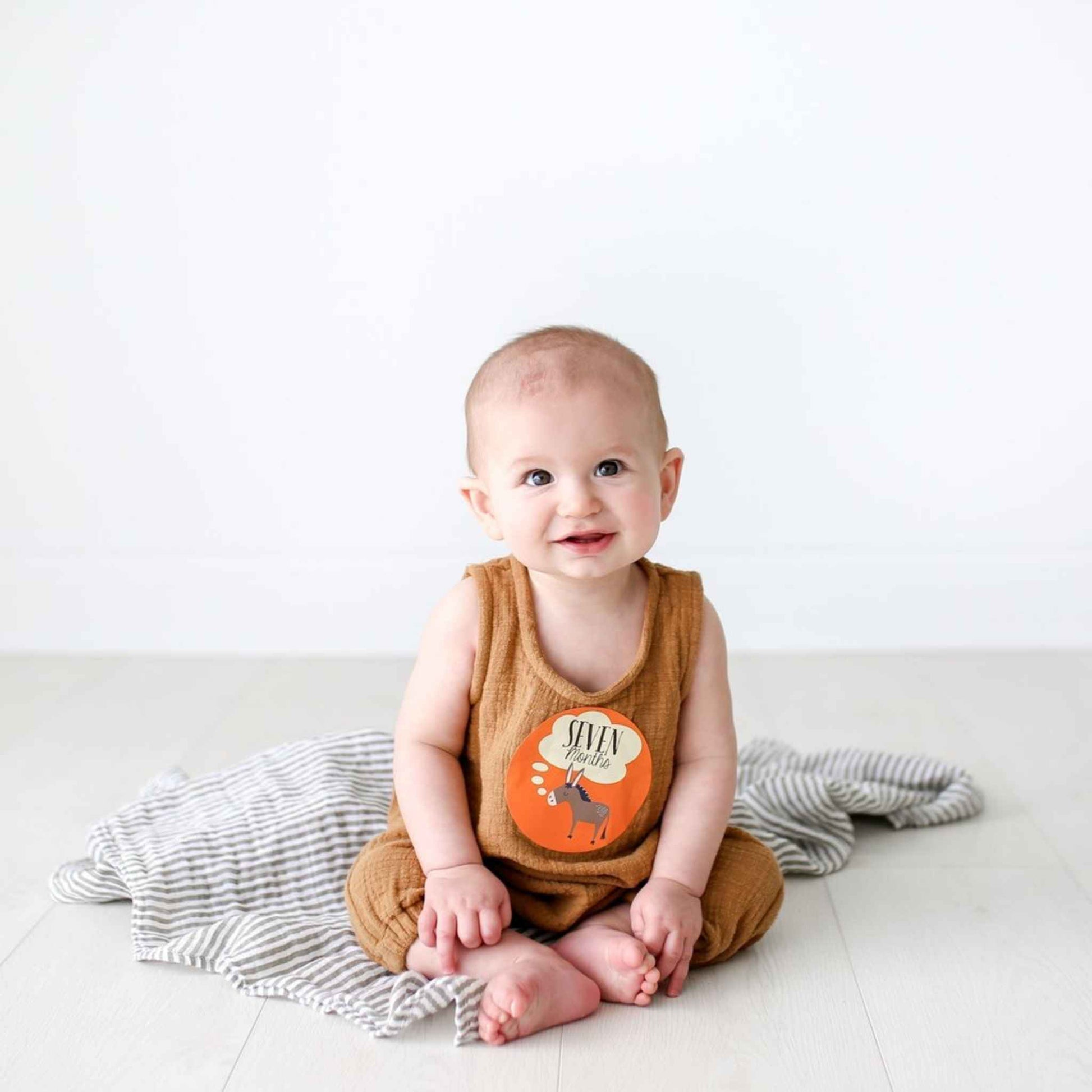 With a unique and stylish design, our neutral retro animal monthly baby stickers are the perfect way for mommy to share her excitement. Start making darling moments in just three steps: Just PEEL, STICK onto the baby's clothing and CLICK with your camera!