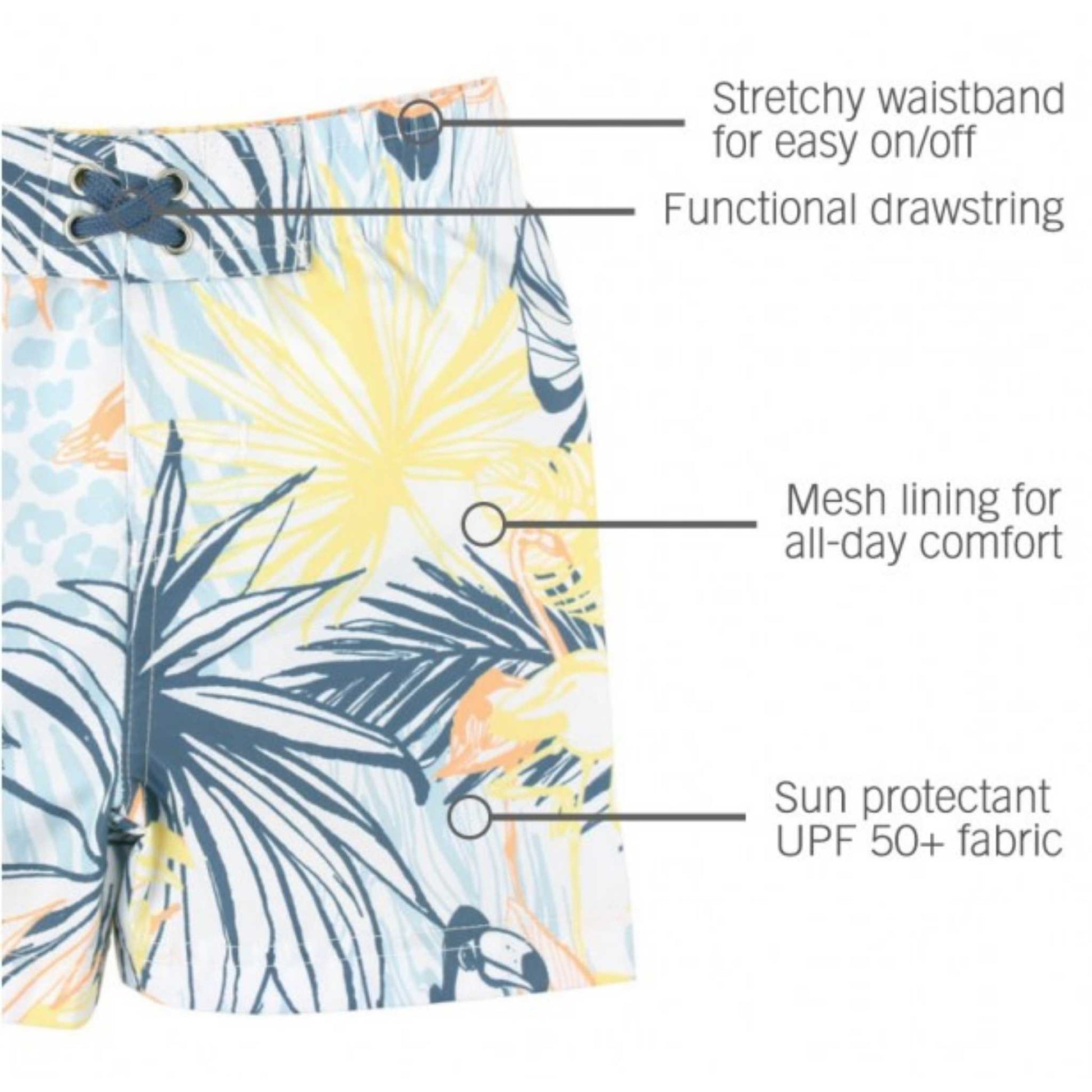 Your search for swim trunks with the right fit ends today. Buy this Birds of Paradise Swim Trunks equipped with mesh lining for ultimate comfort. It's also got drawstrings for an adjustable fit on your growing boy.